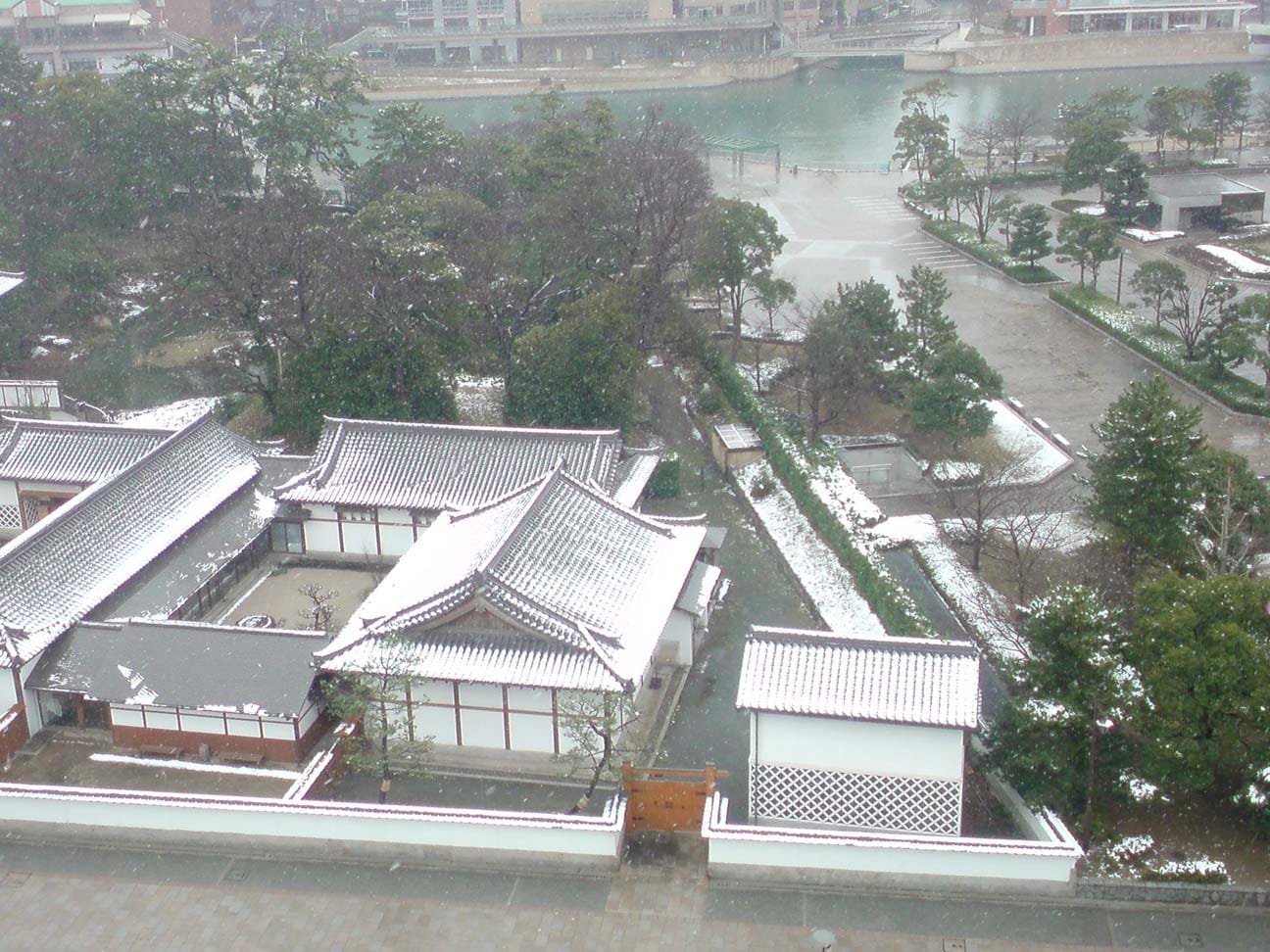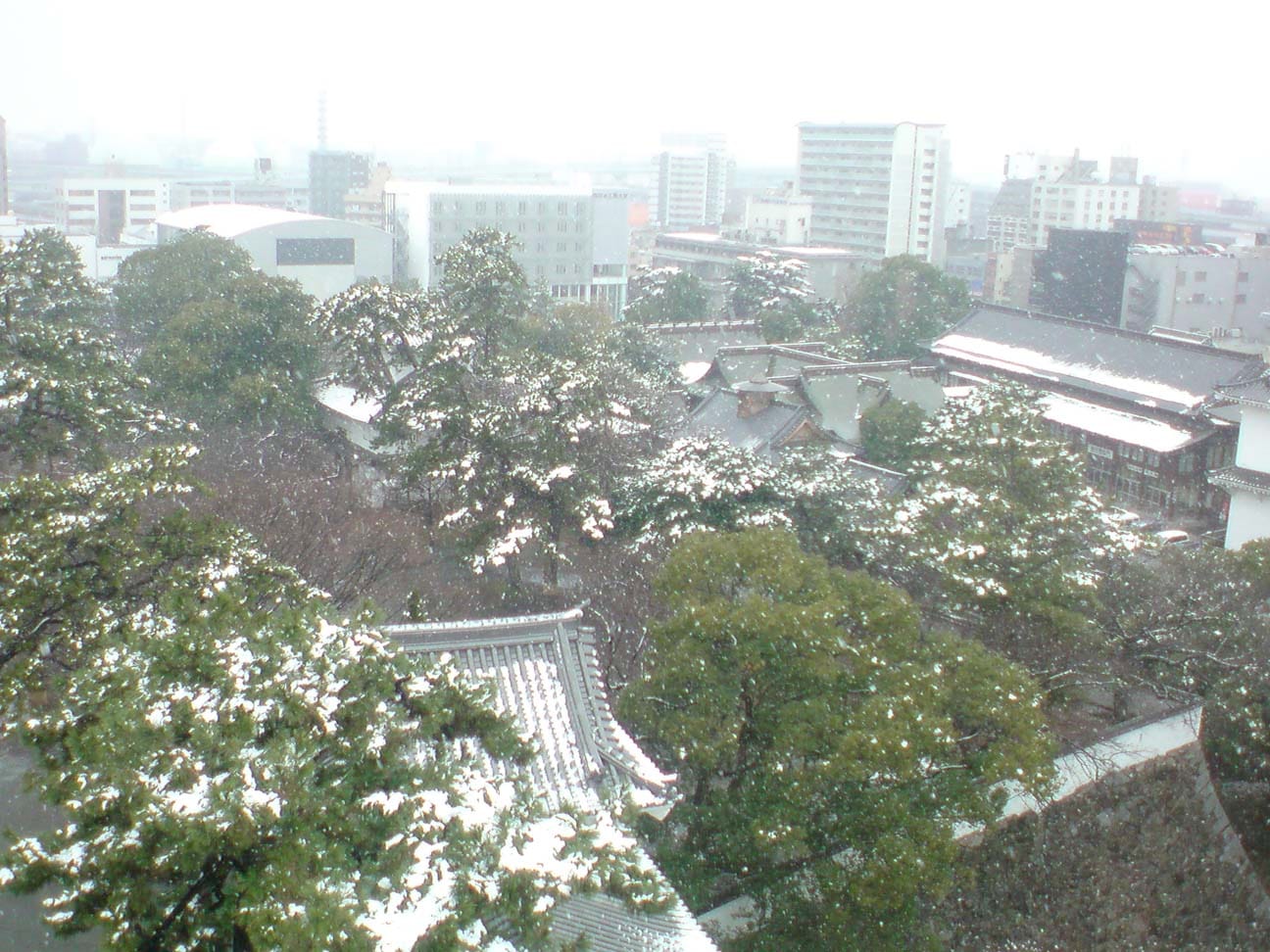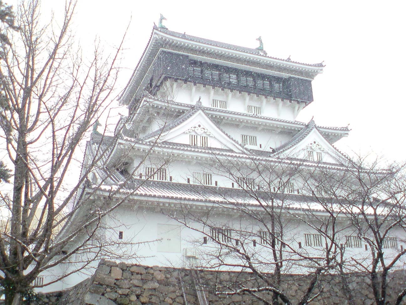 ちらほらと降る雪にマッチする様な、真っ白なお城ですね。